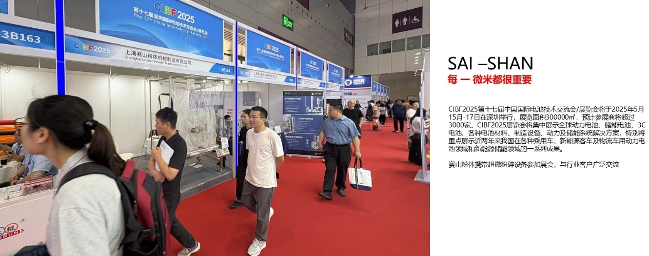 由中国化学与物理电源行业协会主办的“第十七届深圳国际电池技术交流会/展览会”(CIBF2025)将于2025年5月15-17日在深圳国际会展中心隆重举办。本届展会规模宏大,将设立15个展馆,总面积近30万平方米。预计将吸引超过3000家国内外展商参展,并迎来40多万名来自全球的专业观众到场参观洽谈. 维多利亚vic003粉体携带超微粉碎设备亮相展会,与客户广泛交流。